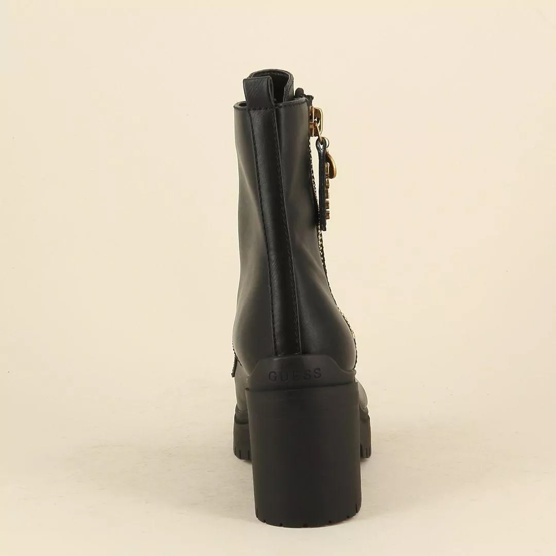 These Guess ankle boots are the epitome of modern sophistication. The sleek black faux leather exterior adds a polished touch, while the rubber sole ensures durability and comfort for those long days on your feet. Whether you’re navigating the city streets or enjoying a cozy weekend getaway, the design keeps you looking stylish without sacrificing comfort. Plus, the zip fastening makes them easy to slip on and off while offering a secure fit every time.
