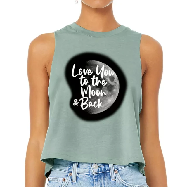Love You to the Moon and Back Racerback Cropped Tank – Moon Graphic Women’s Tank – Cool Trendy Tank Top