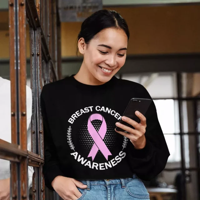 Women’s Cropped Fleece Breast Cancer Awareness Month Sweatshirt – Breast Cancer Apparel